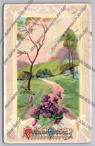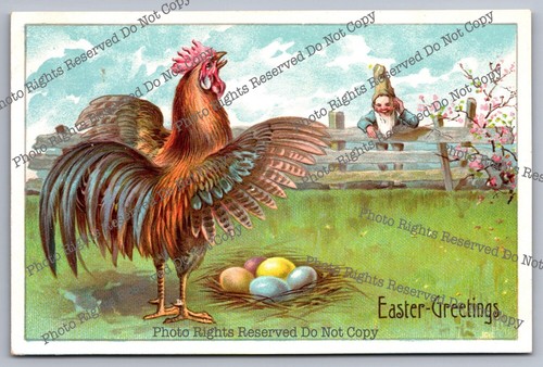 Antique Postcard 1908 Easter Greetings chicken gnome
