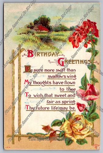 Antique Postcard 1911 Birthday Greetings embossed Junction City Kansas postmark