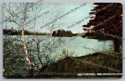 Antique Postcard 1909 Lake In Greenhill Park Worcester Massachusetts