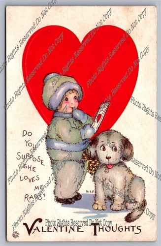 Antique Postcard 1921 embossed boy dog Do You Suppose She Loves Me? Valentine