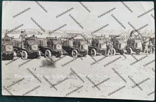 Antique RPPC Military Camp USA and Truck Train Real Photo Postcard El Paso Texas