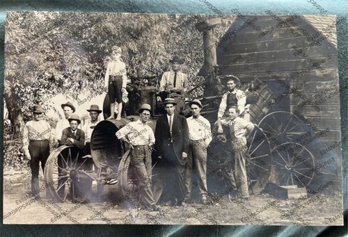 Antique RPPC Men Boys Steam Tractor Machine Vehicle Real Photo Postcard