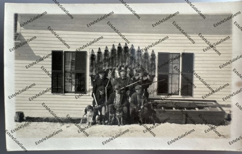 Antique RPPC fur trappers hunters dogs pelts guns trapper Real Photo Postcard