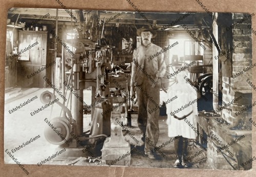 Antique RPPC Prescott Kansas shop Machine shop Real Photo Postcard