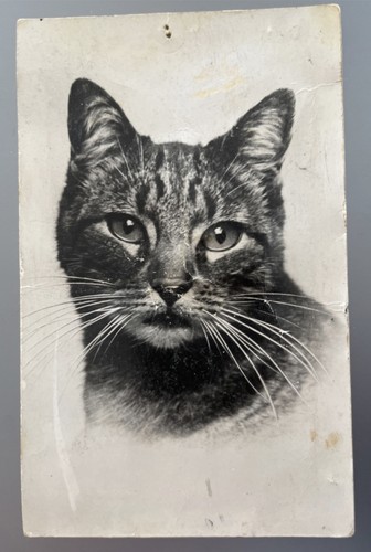 Vintage Postcard Tabby Cat Portrait Black White Editions Rhodania France - As Is