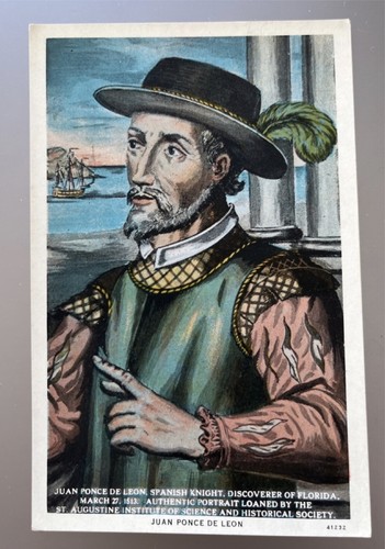 Vintage Postcard Ponce De Leon Portrait Art St Augustine Florida Institute Of Sc