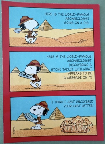 Hallmark postcard Snoopy Peanuts message: You haven't written in a long time