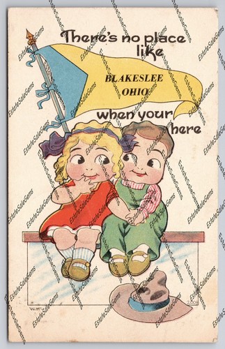 Vintage Postcard There's No Place Like Blakeslee Ohio When Your Here cartoon