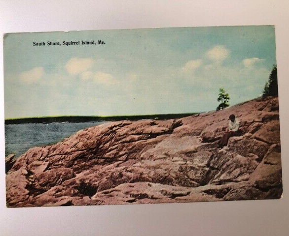 antique / vintage postcard SQUIRREL ISLAND MAINE South Shore woman sitting rocks