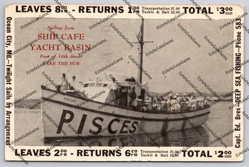 Vintage Postcard 1948 Ocean City Maryland advertising deep sea fishing boat