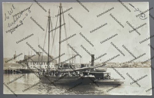 RPPC 1905 Gloucester MA ship SF MAPES tug boat STARTL... Real Photo Postcard