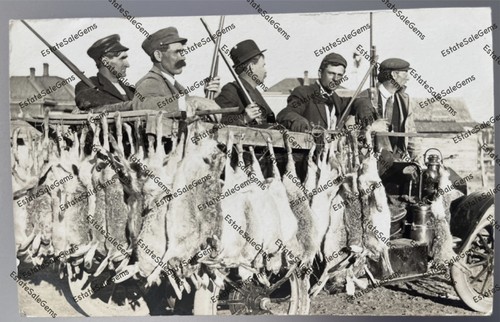 Antique RPPC hunter rabbits Fred Bogenhagen Aurora S Dakota? Real Photo Postcard