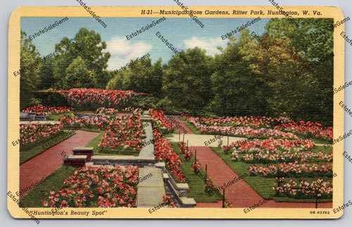 vtg postcard 1948 Municipal Rose Gardens Ritter Park Huntington West Virginia