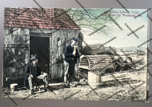 Antique Postcard Portland Maine Cape Elizabeth Making Lobster Traps