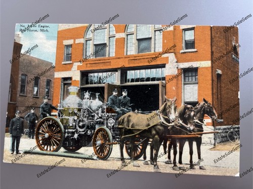 Antique Postcard 1912 Port Huron Michigan Fire Engine