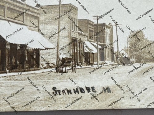Antique RPPC 1910 Stanhope Iowa street scene Real Photo Postcard