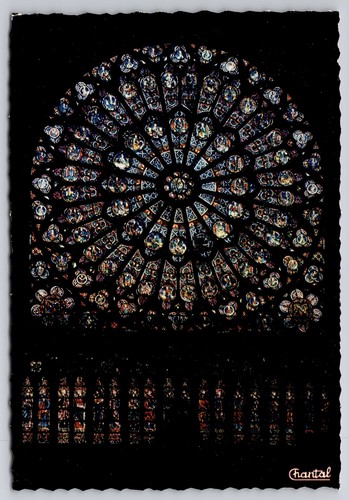Vintage Postcard Paris France stained glass window Notre Dame cathedral
