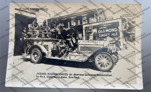 Antique RPPC Waterbury CT Fire Truck American LaFrance Real Photo Postcard-style