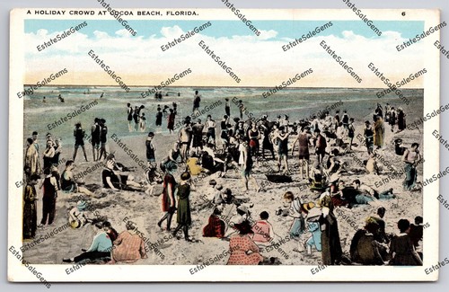 Antique Postcard A Holiday Crowd At Cocoa Beach Florida