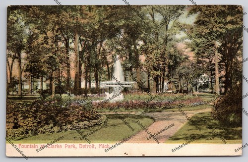 Antique Postcard 1907 Fountain At Clarks Park Detroit Michigan