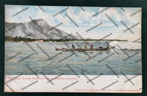 Antique Postcard Surf Riding Hawaiian Canoe Waikiki Honolulu Territory of Hawaii