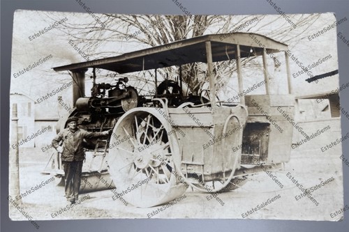 Antique RPPC Steam Roller Tractor Ashcroft Boston New York Real Photo Postcard