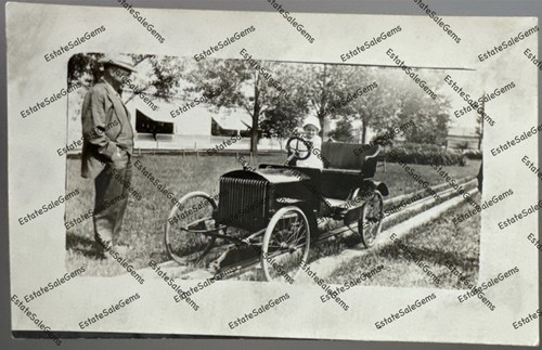 Antique RPPC 1911 men driving car automobile Michigan snow Real Photo Postcard