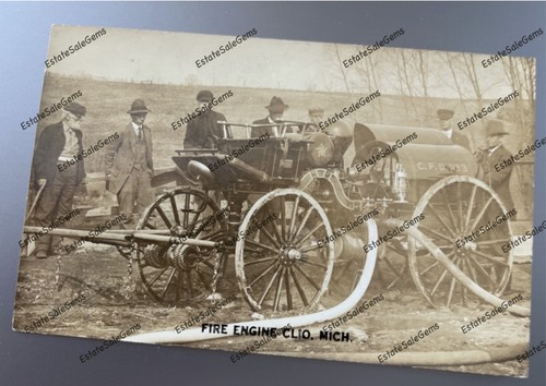 Antique RPPC Real Photo Postcard Fire Engine Clio Michigan