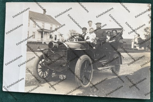 Antique RPPC 1909 family in automobile car New Hampshire Real Photo Postcard