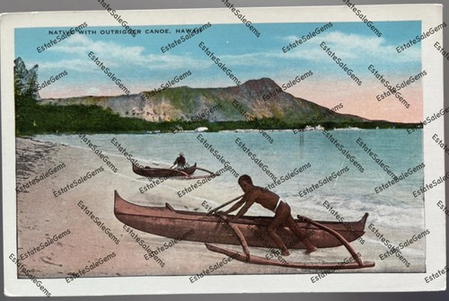 Vintage Postcard Native with Outrigger Canoe Hawaii