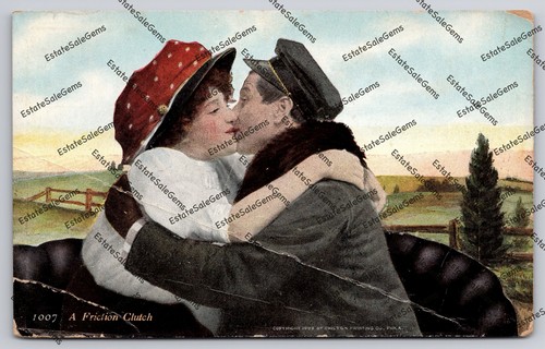 Antique Postcard kissing couple A Friction Clutch Automobile Trade Journal