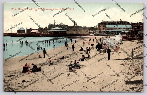 Antique Postcard Rhode Island The Beach Looking S Narragansett Pier R I
