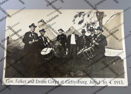 July 1-4 1913 RPPC Gettysburg PA Felker Civil War Drum Corps Real Photo Postcard