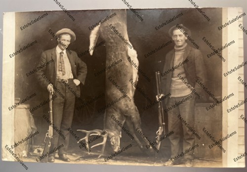Antique RPPC early 1900s Real Photo Postcard hunters guns dead deer game hunting