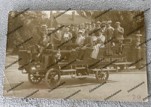 Antique 1907 RPPC Seattle WA Sightseeing Bus Auto Coach Tour Real Photo Postcard