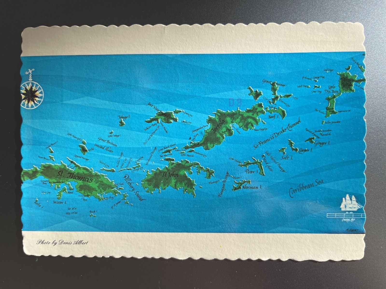 Vintage Postcard c. 1979 Map Caribbean USVI Tortola BVI Virgin Islands St. John