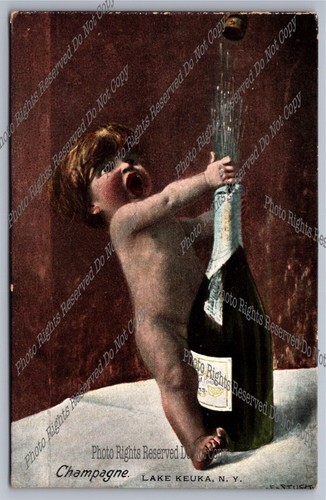 Antique Postcard Champagne cork popping Lake Keuka NY New York