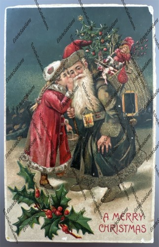 Antique Postcard 1909 embossed Santa Claus Father Christmas St Nick