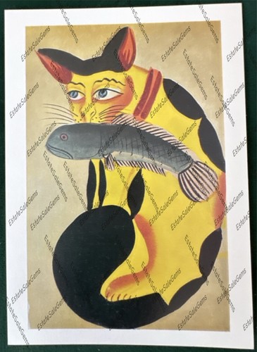 postcard fine art water colour VA Museum Cat with Fish in mouth Khalighat