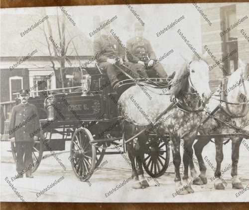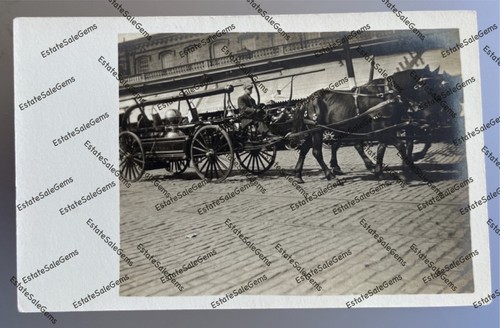 antique RPPC horse drawn fire truck Worcester? Massachusetts real photo postcard