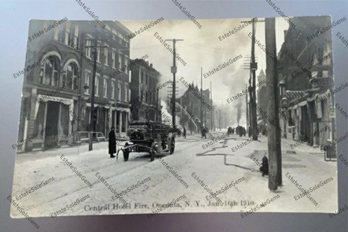 antique Jan 16 1910 RPPC Central Hotel Fire Oneonta New York real photo postcard