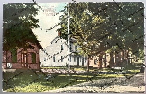 Antique Postcard 1915 Sherman Connecticut Town Hall and Probate Office