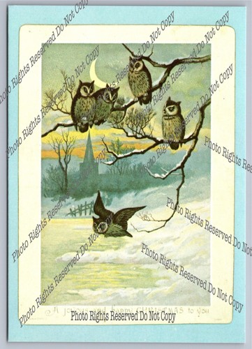 vtg Postcard repro of Victorian card Owls A Joyous And Happy Christmas To You