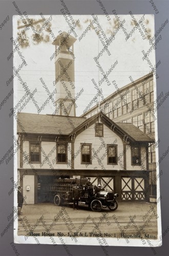 Antique 1912 RPPC Hopedale Massachusetts Fire Truck Hose real photo postcard
