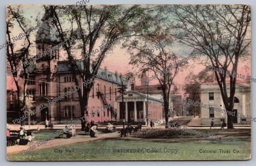 Antique Postcard 1912 City Hall Waterbury Connecticut Colonial Trust Co .