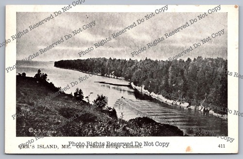 Vintage or Antique Postcard Orr's Island Maine bridge channel