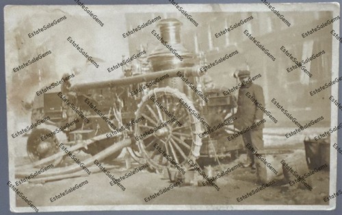Antique RPPC steam fire engine truck snow chains on tires Real Photo Postcard