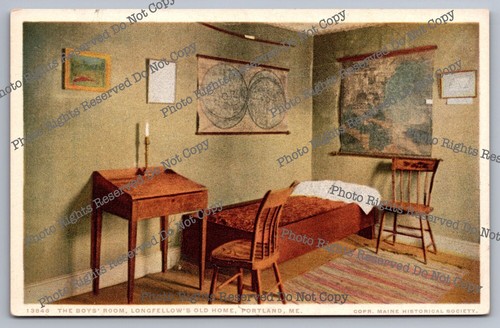 Vtg Postcard The Boys'Room Longfellow's Old Home Portland Maine Historical Soc.