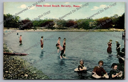 Antique Postcard bathers Dane Street Beach Beverly Massachusetts