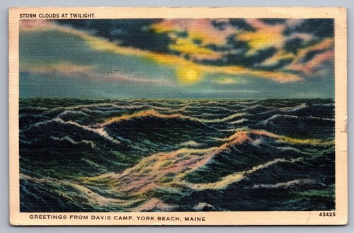 Vintage Postcard 1942 Storm Clouds At Twilight Davis Camp York Beach Maine